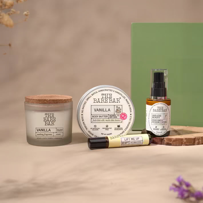 This bundle is a return to calm confidence. With a golden serum to soften the signs of time, vanilla butters to envelop your skin, and an anxiety roll-on for moments in between: Age of Ease is a quiet celebration of strength, softness, and scent. Care that doesn’t perform... just holds.