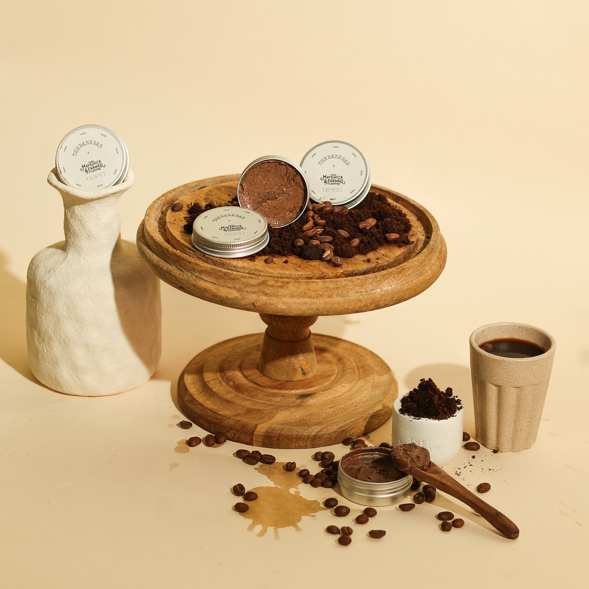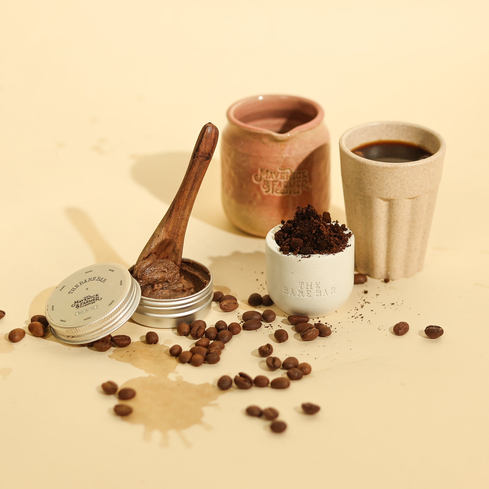 Made with upcycled spent coffee, this rich, creamy formula is packed with shea butter, coconut oil, and avocado butter to deeply hydrate and nourish your skin. We’ve blended in coffee powder, cocoa powder, and coconut powder to leave your skin feeling silky smooth, while vanilla essential oil adds a warm, comforting scent that feels like a cozy hug.