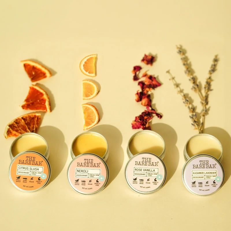 Sunlit Garden is a bright, uplifting set that captures the gentle warmth of a morning in full bloom. Soft Kashmiri lavender and delicate neroli bring calm and freshness, while rose vanilla adds a touch of sweetness and citrus slush infuses a sparkling, invigorating lift.